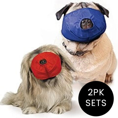 The Pug-Nosed Quick Muzzle® 2-Set for Dogs contains durable muzzles to ensure safety for dogs and handlers. The hook-and-loop closure enables you to easily restrain or release the dog. This muzzle features adjustable straps that create a secure fit. This muzzle is made from durable pack nylon that is reinforced with webbing material and is water and dirt-resistant. Please note this muzzle is form-fitting and may cover the dog's eyes.