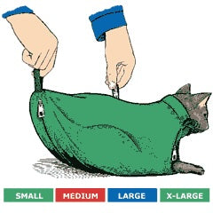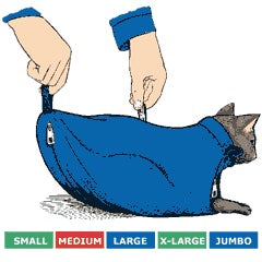The Cat Sack™ Set with Rear-Underside Zipper is a great cat bag set for animal clinics and veterinarians. Each Cat Sack™ is color-coded according to the size, making it easy to use for a variety of animals. There is a quick-close collar and two-way zipper for front and rear access, with zippered openings for front paw access. The rear-undersize zipper feature of this Cat Sack™ set allows for easier back-leg access.