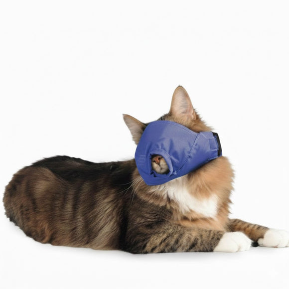 The Quick Muzzle is our patented cat muzzle that fastens easily, immediately protecting handlers and other animals. The cat muzzle covers the eyes, creating a calming effect for most felines. The adjustable straps ensure a secure fit.